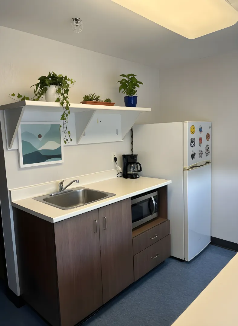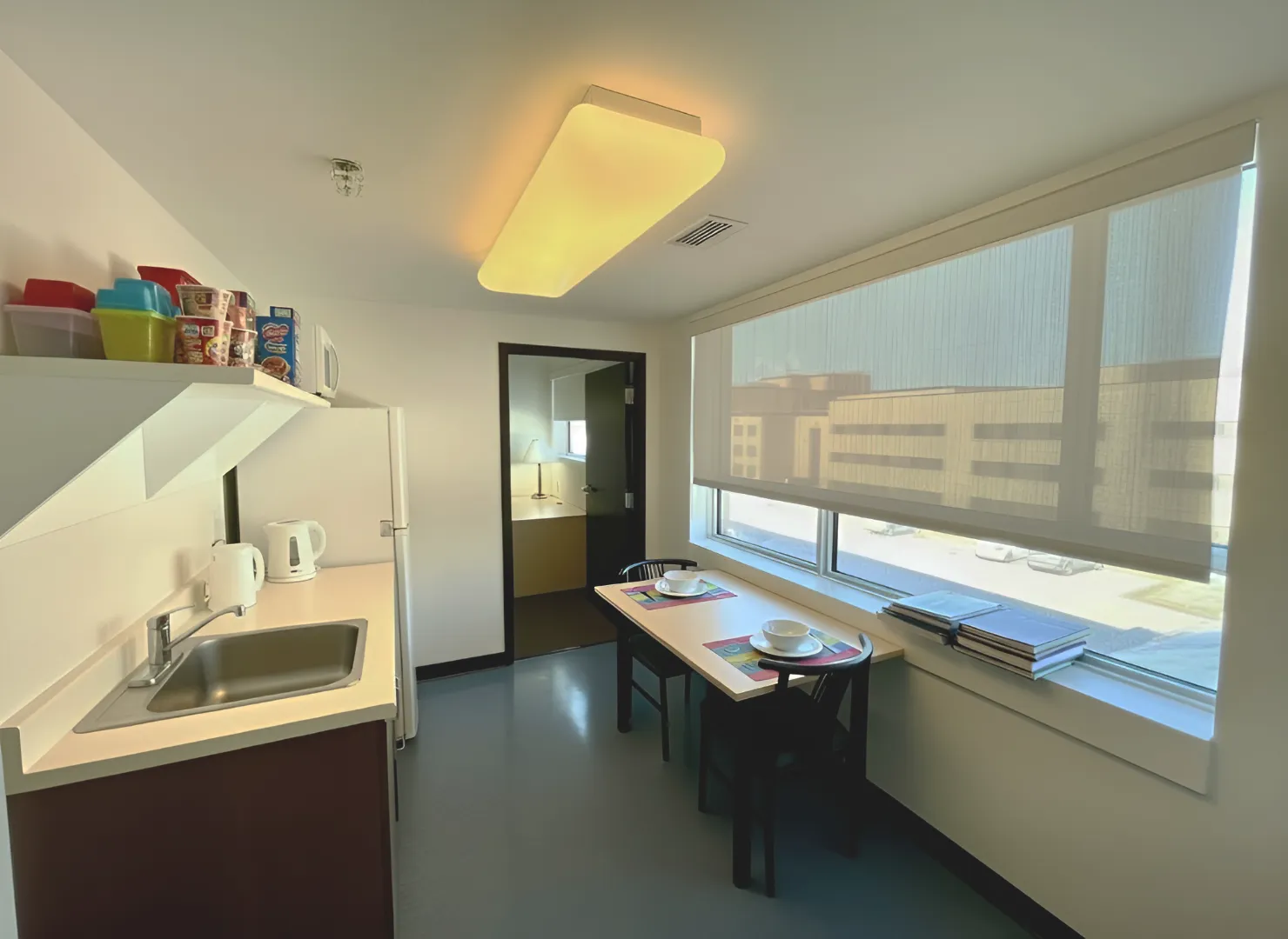 Des cuisines communes, situées aux premier et quatrième étages, sont accessibles en tout temps.